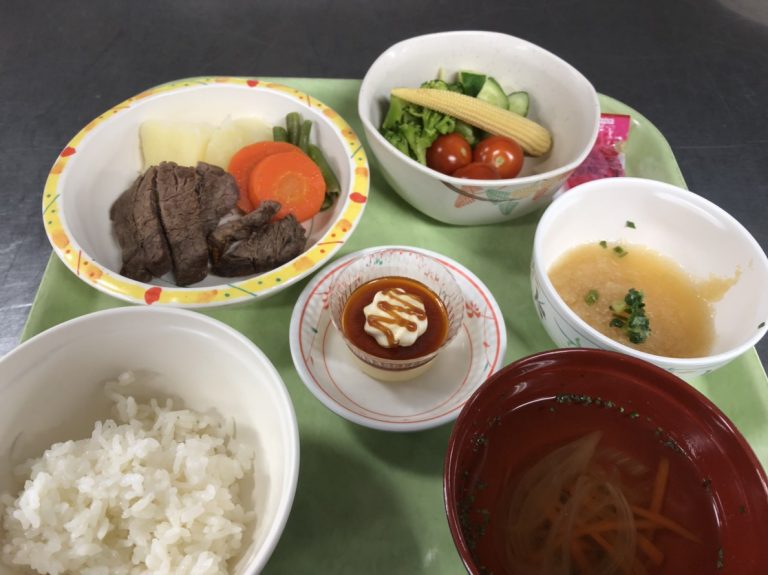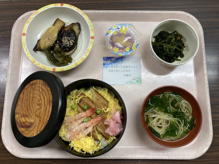 食事を楽しみにして下さる患者様に、行事食はもちろん月一度特別献立を供し、旬の食材を取り入れいつもより少しごちそう部分を味わっていただいております。