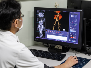 さらに画像処理装置を用いて、血管や骨などの三次元画像や任意角度での断面像を作成し、診断に役立てています。