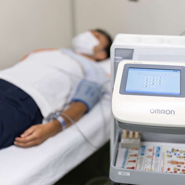 睡眠中の呼吸状態を記録し、睡眠障害の有無を調べる検査です。