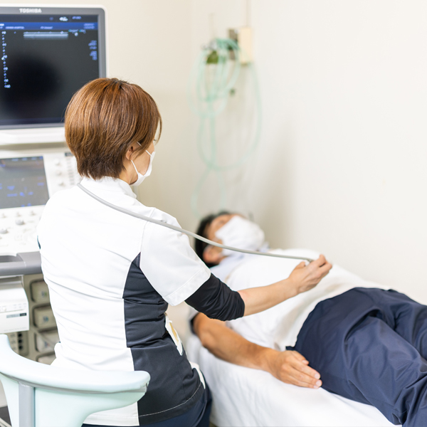 高周波数の超音波を臓器に発信して、返ってくるエコー(反射波)を受信し、臓器の様子を画像に映し出し診断する検査です。